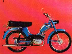 Moped MP 2 Ein Moped für Anspruchsvolle ist dieses komfortableTourenmodell. Auffallend der besonders stabile Zentralrohrrahmen und der gepreßte Gepackträger mit Federklappe. Angenehmes, kornfortables Fahren durch Vorderrad-Telegabel, Hinterradfederung und den bequemen Schwingsattel. Das Moped MP 2 ist ausgestattet mit einem SACHS - Motor mit 2 - Gang - Handschaltung (fahrtwindgekühlt), der bei 4900 U/min. 2,6 PS entfaltet. 2,6 "Pferde”, die dem MP 2 eine Geschwindigkeit von 40 km/h verleihen. Vollbremsnaben 90 mm vorn und hinten sorgen für die Sicherheit. Der Tacho ist im Rechteckscheinwerfer untergebracht. Der Kraftstofftank faßt 3,7 Liter.