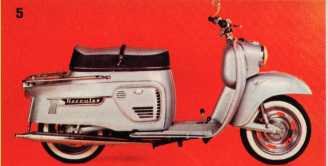 4: Mockick MK 3 M Ein rassiges Mokick mit SACHS 3-Gang-Motor mit Kickstarter und Fußschaltung 2,9 PS. Ein Mokick wie es sein soll; absolut verwindungsfreier Zentralrohrrahmen, Telegabel und Hinterradschwinge SACHS-Vollbremsnaben 115 mm ; Hinterrad mit Steckachse; Bereifung 2 3/4 - 17; große bequeme Doppelsitzbank, Soziusrasten. 130 mm Scheinwerfer. Ein Mokick, dessen Straßenlage hell begeistert und dessen Fahrkomfort überzeugt. Eine Probefahrt wird es bestötigen.