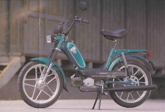 MOTOR: 50 ccm Hubraum, 25 km/h Höchstgeschwindigkeit. GETRIEBE: 3-Gang-Handschaltung. FEDERUNG: Vorne verstärkte Teleskopgabel mit 90 mm Federweg, hinten Schwinge mit offenen Sport-Federbeinen, Federweg 65 mm. BREMSEN: Trommelbremsen vorne und hinten, Rücktrittbremse. TANKVOLUMEN : 8,5 Liter. AUSSTATTUNG: Sport-Sitzbank, großer Breitstrahl-Scheinwerfer, Bremslicht, Gepäckträger mit Packtaschenbügel. FARBEN: Barolorot. SONDERZUBEHöR: ausführliche Beschreibung siehe Seite 14/15.